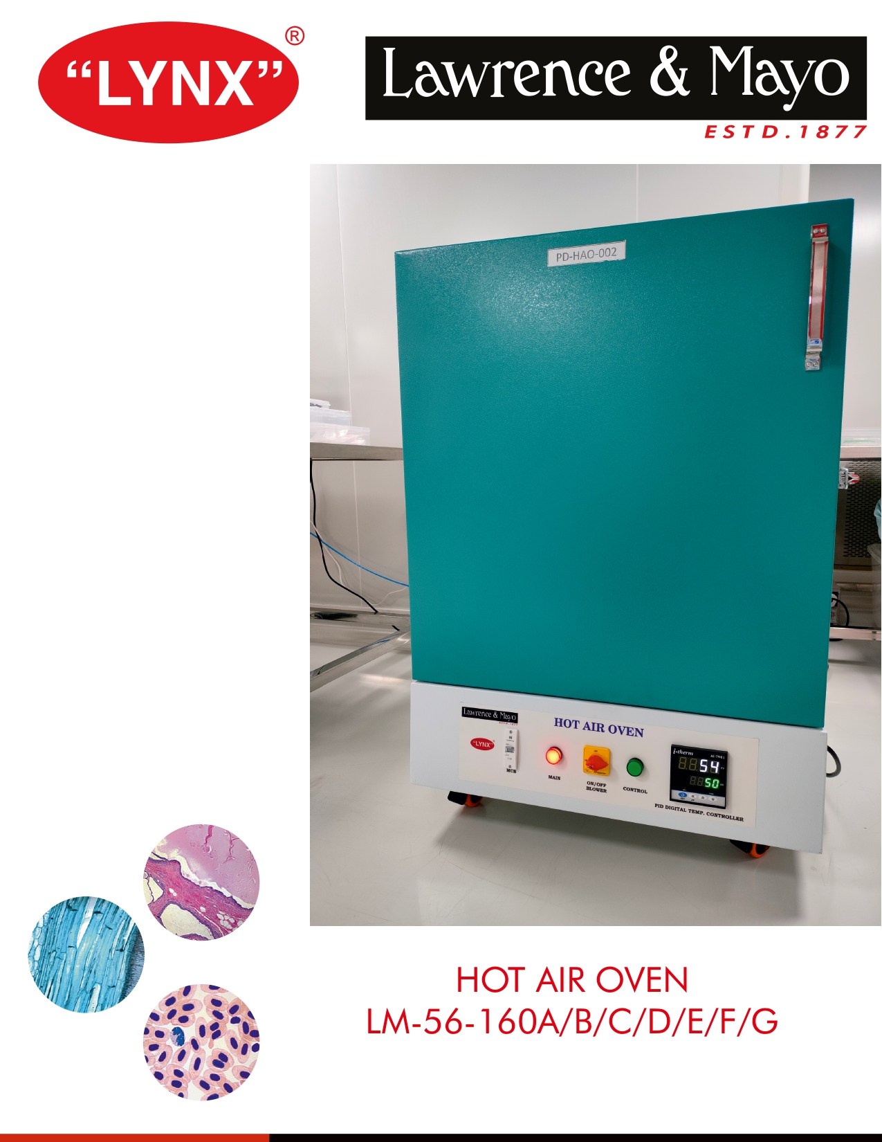 The LYNX Hot Air Oven LM-56-160 Series has different models (as mentioned in Alphabetical Order by Size) as per the different Standard sizes of an Hot Air Oven